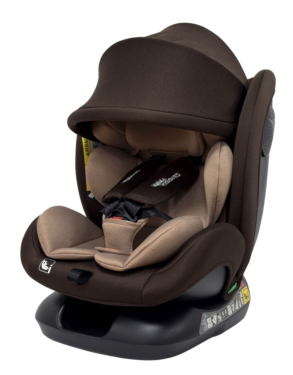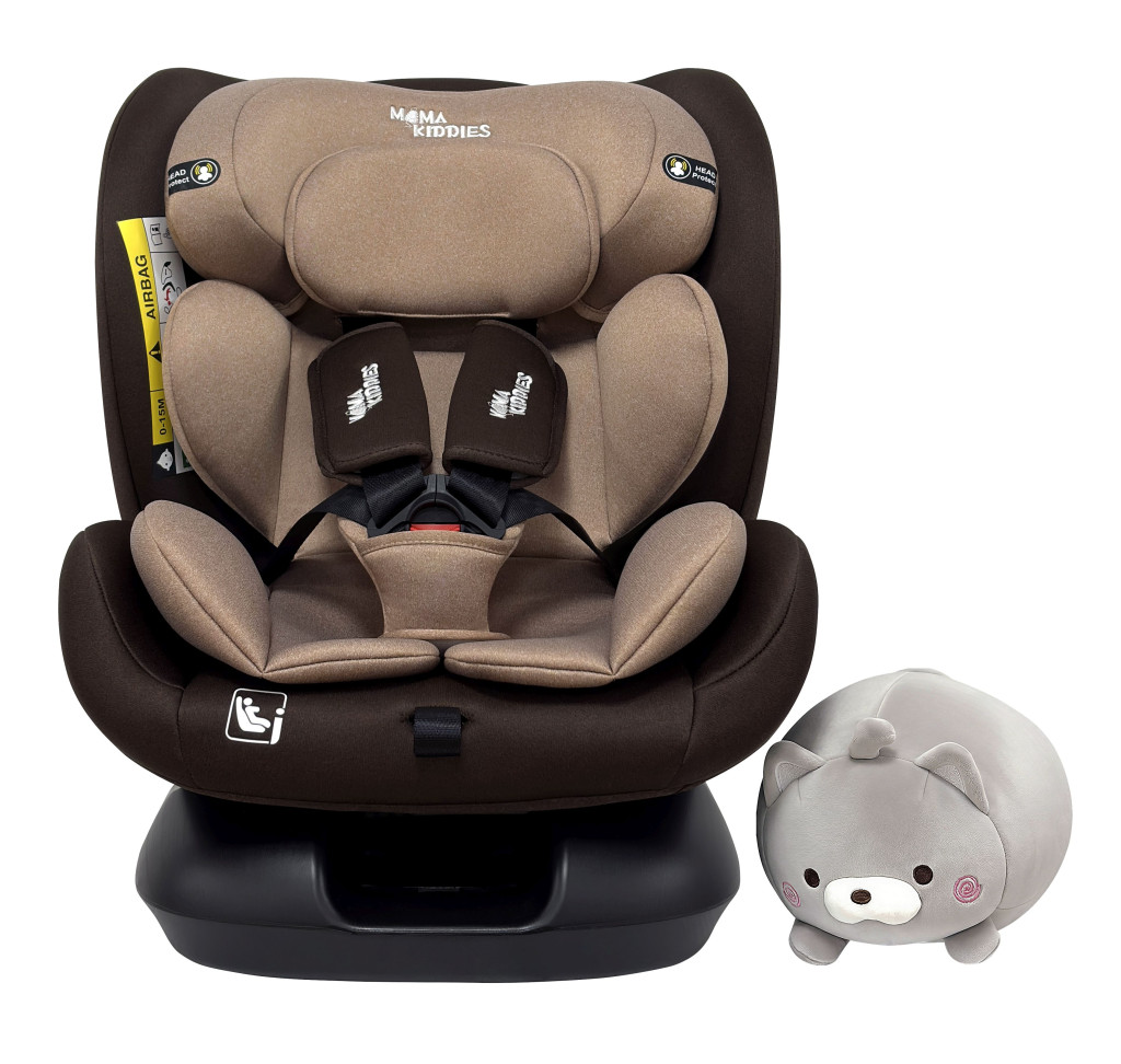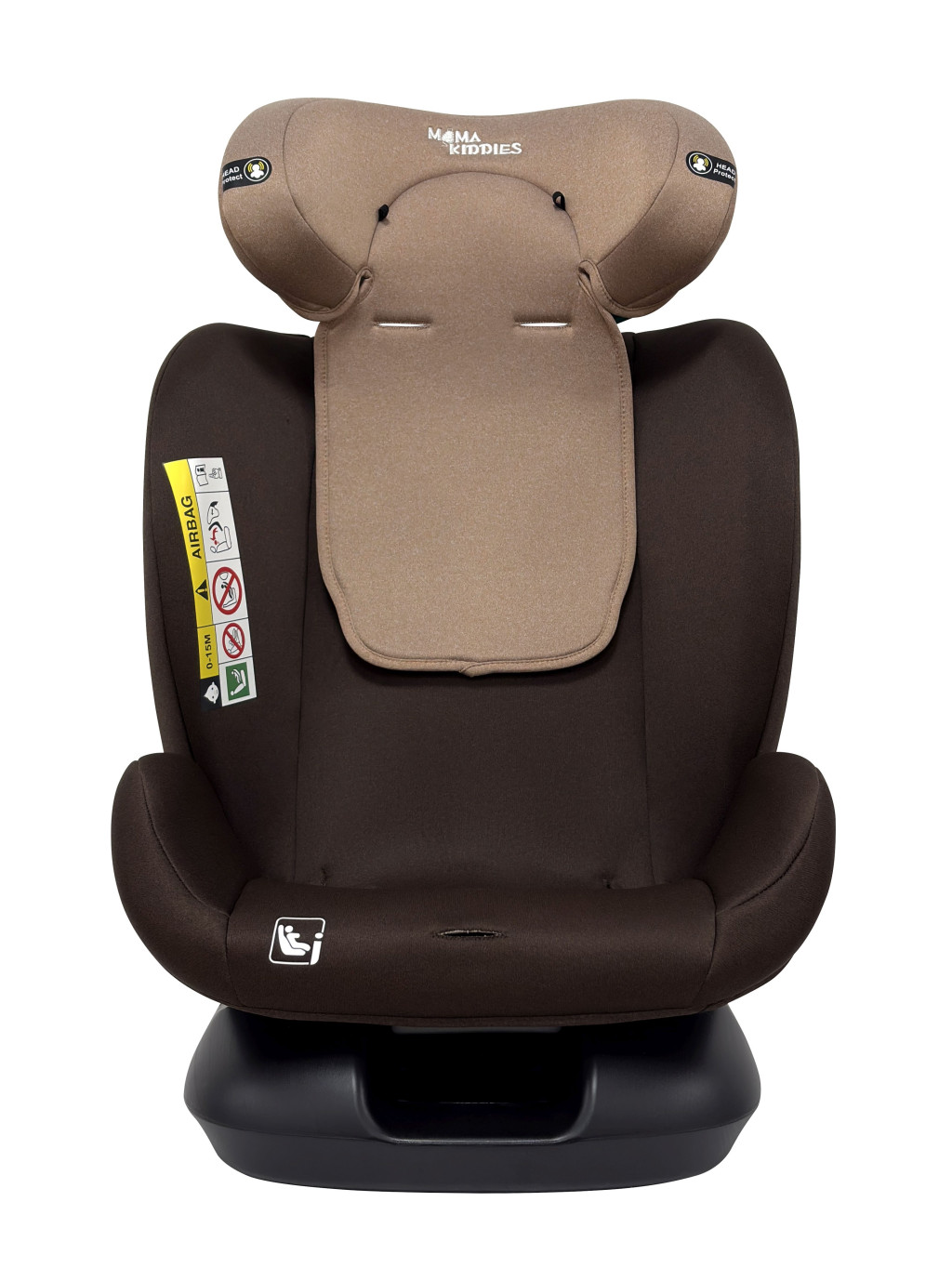 Scaun auto Mama Kiddies Nova Luxe i-Size, fixare cu centura de siguranță – maro (40–150 cm) + CADOU pernă de călătorie