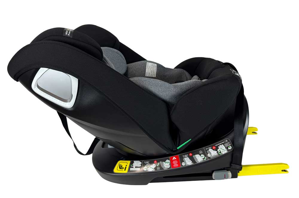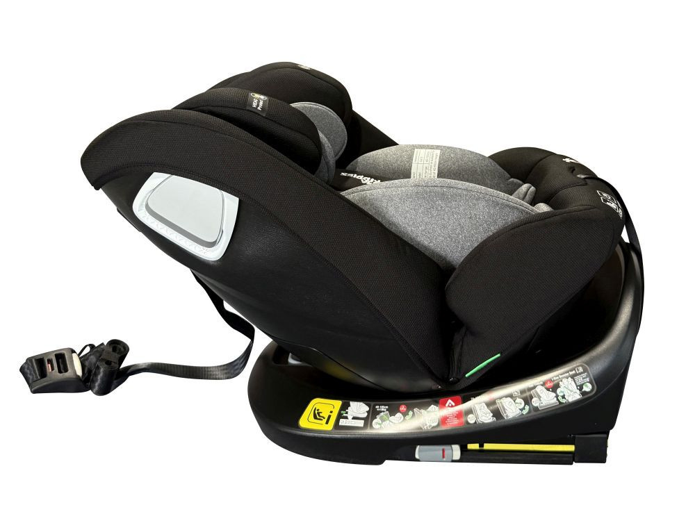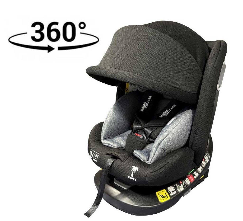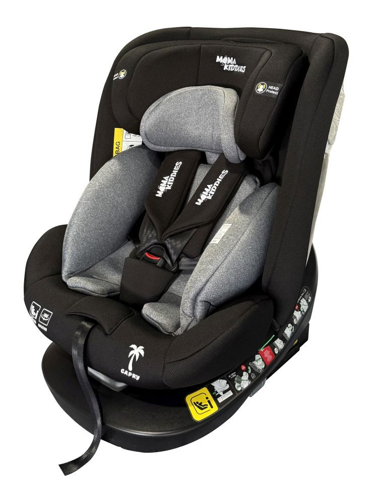 Asigură o călătorie sigură și confortabilă. Scaunul auto se poate roti la 360°, are spătar și tetieră reglabile. Mama Kiddies este dedicată siguranței și confortului copiilor, stabilind cu acest model un nou standard în domeniul siguranței auto pentru copii.