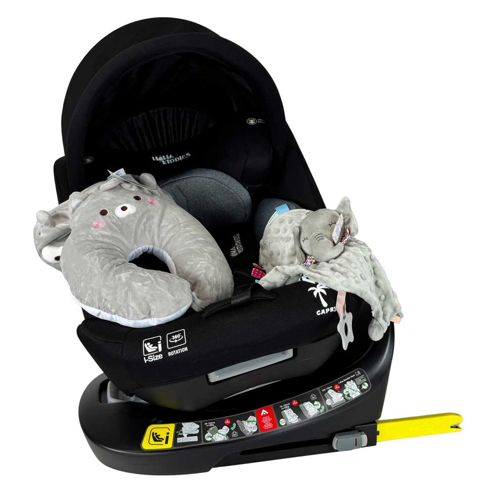 Scaun auto de siguranță Mama Kiddies iSize Capry rotativ 360° cu sistem ISOFIX (40–150 cm) culoare gri + Cadou