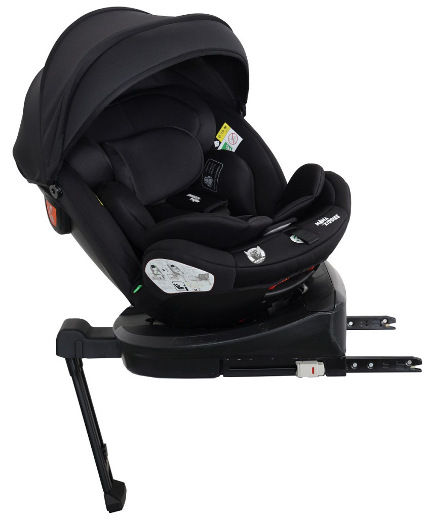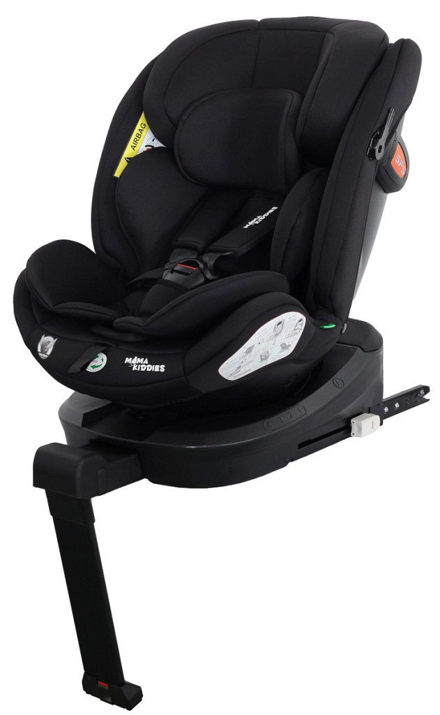 Scaun auto de siguranță Mama Kiddies Turbo Wings rotativ 360° cu ISOFIX (40–150 cm), culoare neagră, cu picior de sprijin + cadou parasolar, pernă pentru susținerea spatelui