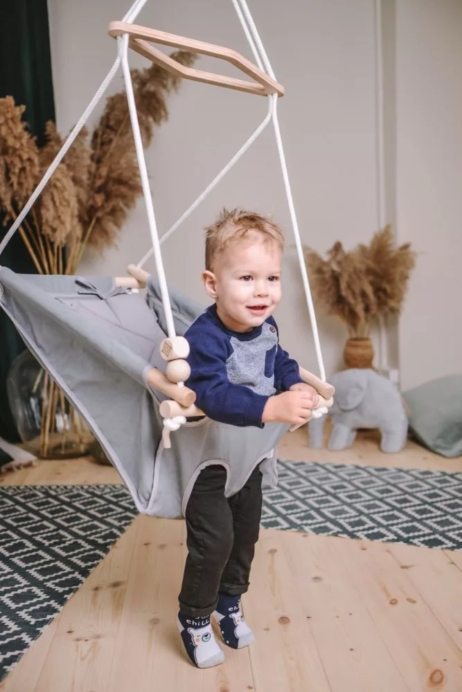 Bebelușii mai mari se pot legăna în sus și în jos stând în fund, scoțând picioarele prin gauri și atingând pământul, întărindu-și astfel mușchii.