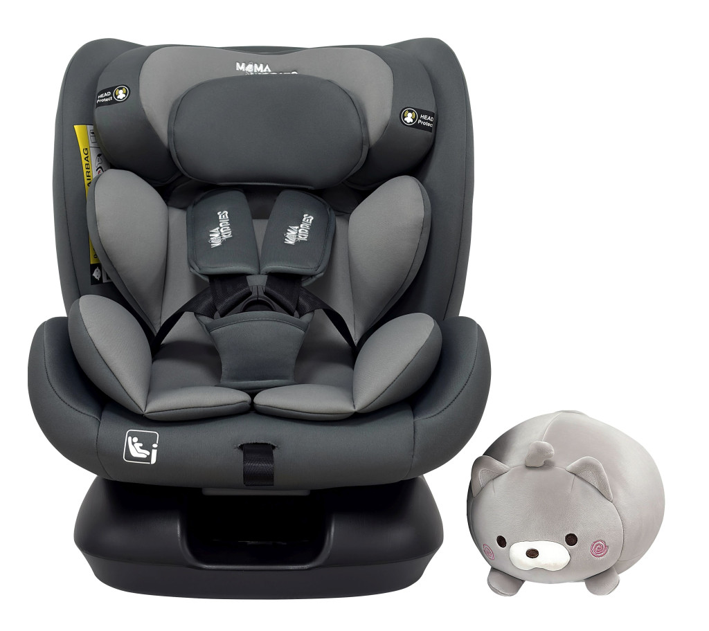 Scaun auto Mama Kiddies Nova Luxe i-Size, fixare cu centura de siguranță – culoare gri închis (40–150 cm) + CADOU pernă de călătorie