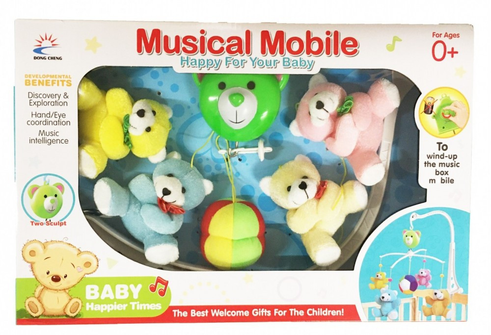 Ursulețul drăguț se rotește și redă o melodie plăcută, stimulând simțurile și atenția copilului.