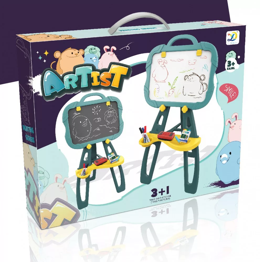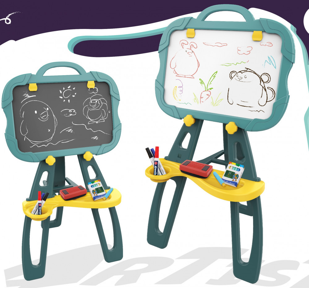 Tablă de desen magnetică față-verso cu multe accesorii – verde