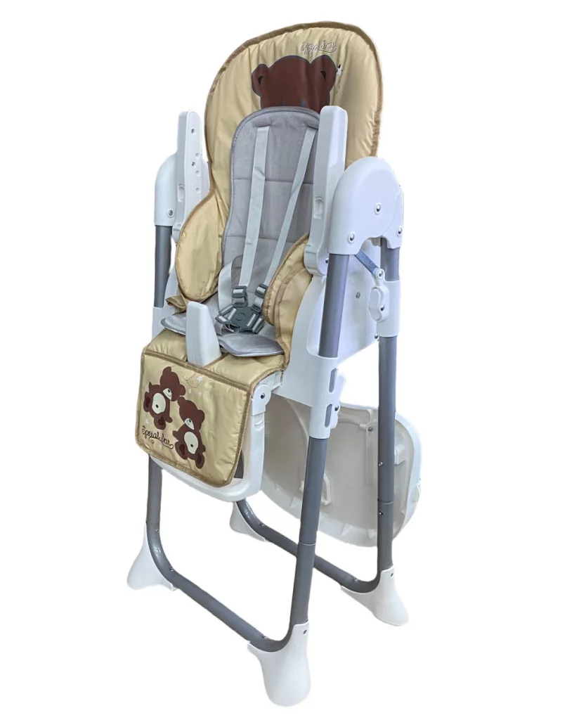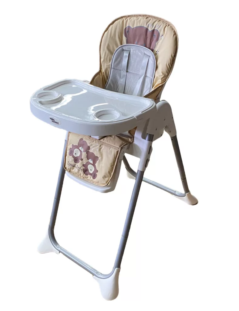 Scaun de masă multifuncțional Mama Kiddies Lylyan, culoare bej, cu model ursuleț + Cadou
