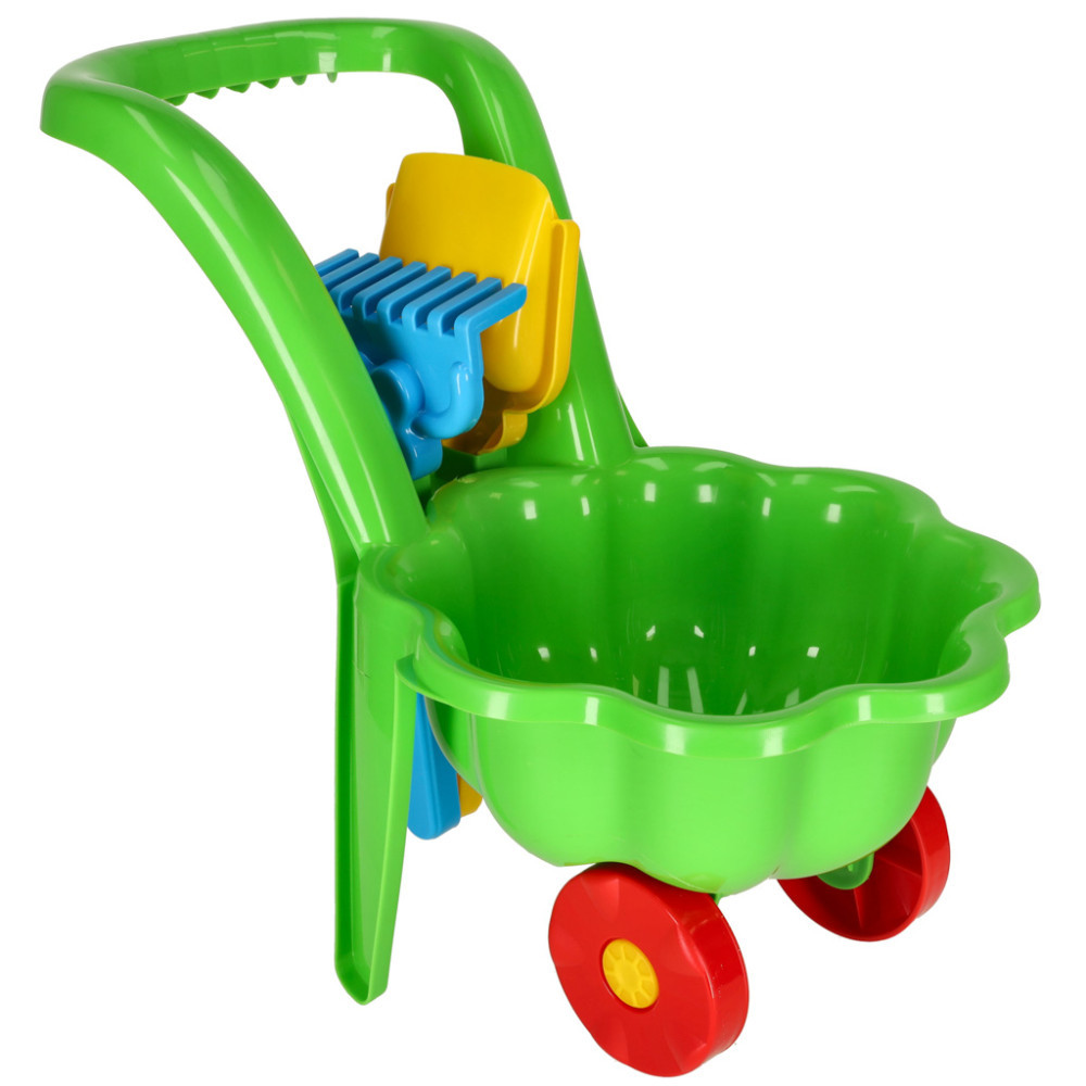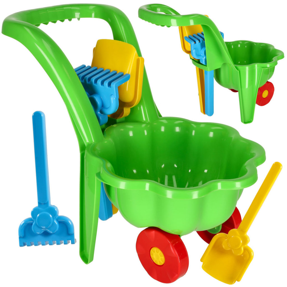 Roabă de jucărie în formă de floare cu accesorii – culoare verde