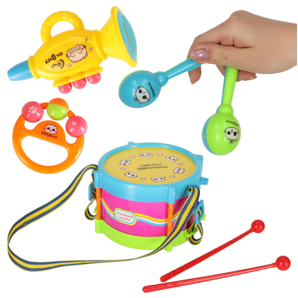 Set de instrumente muzicale pentru copii – tobă și instrumente cu zornăitoare