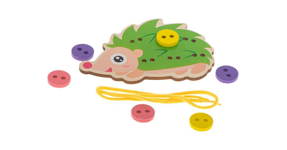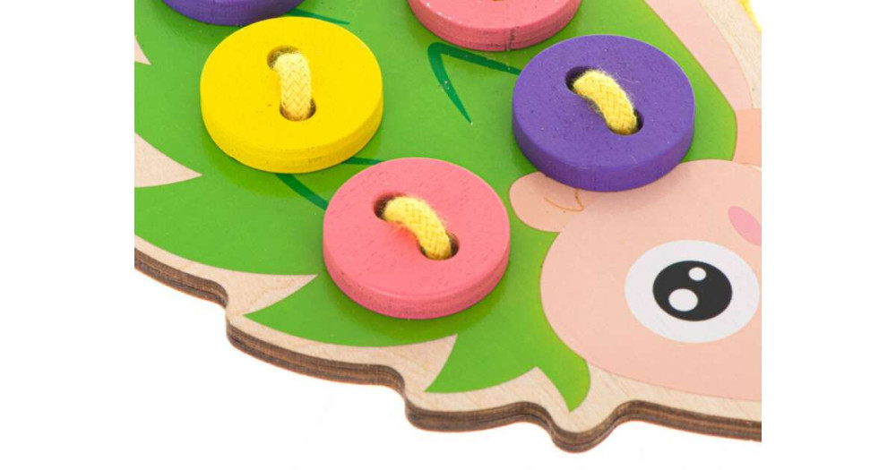 Ariciul prietenos este un instrument perfect pentru susținerea dezvoltării copilului. Este foarte util pentru a învăța să coasă și să lege funde. În timp ce copilul trece șnurul prin găuri, își dezvoltă îndemânarea manuală și gândirea logică.