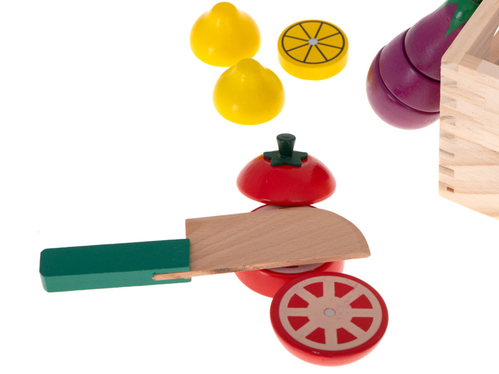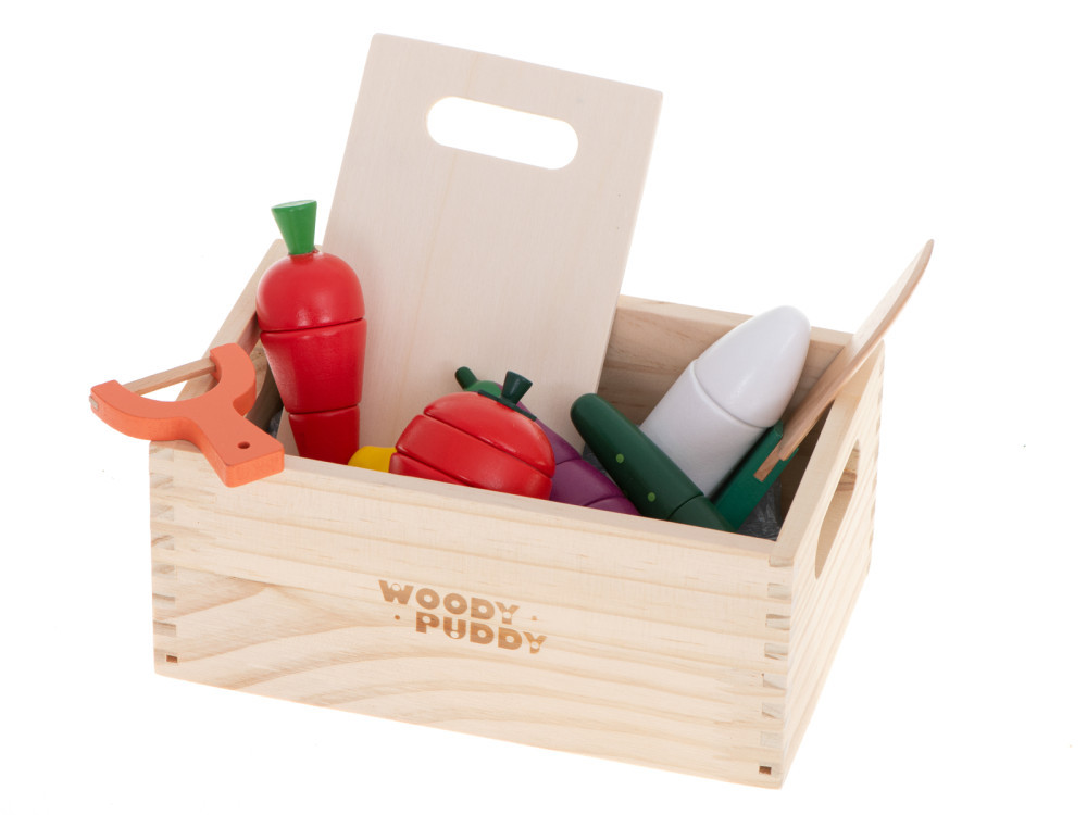 Legume colorate într-o cutie din lemn, pentru ca micuțul să poată experimenta bucuria gătitului.