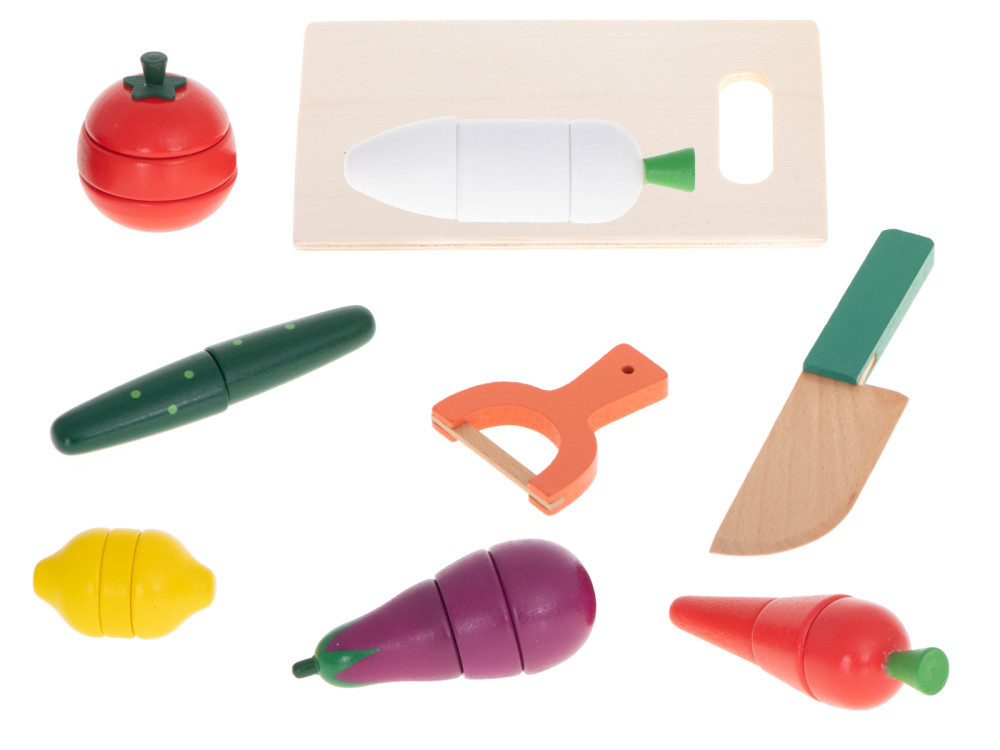 - Puzzle – copilul taie legumele, le amestecă și încearcă să le potrivească corect.