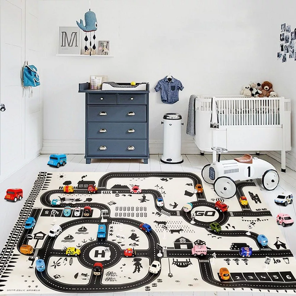 Covorul cu model urban îndeplinește visurile copiilor.