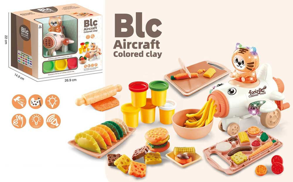 Mașină de făcut paste pentru copii în formă de avion, cu plastilină colorată și accesorii